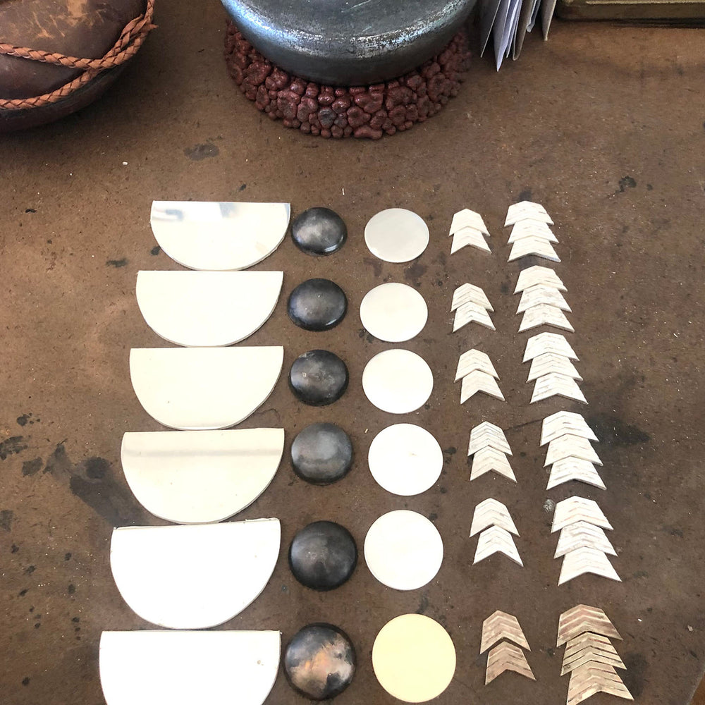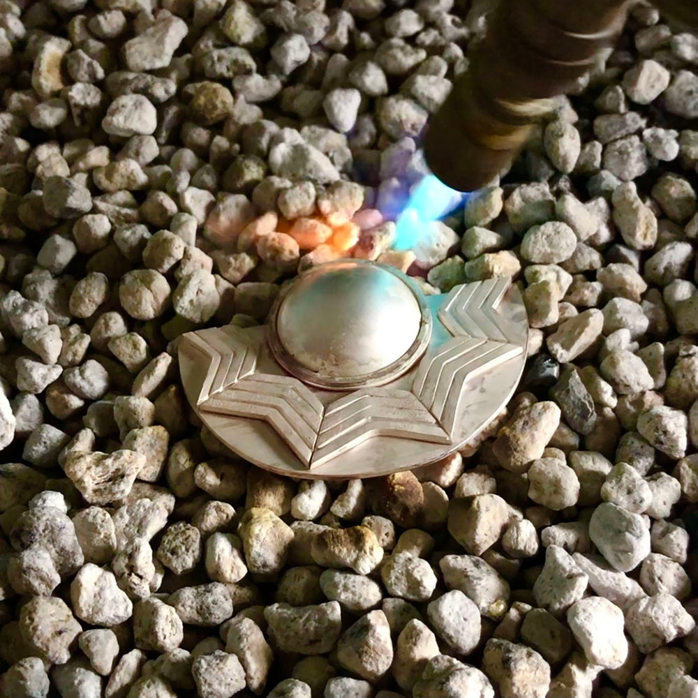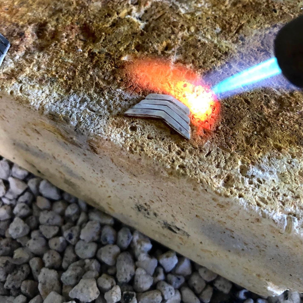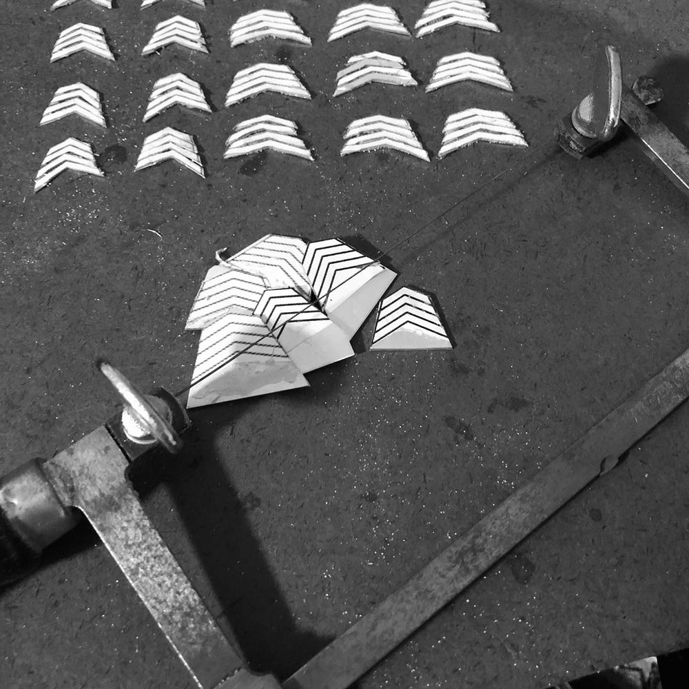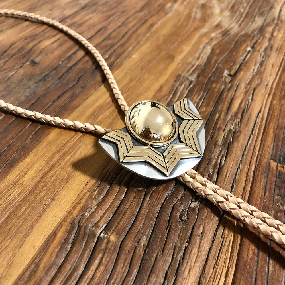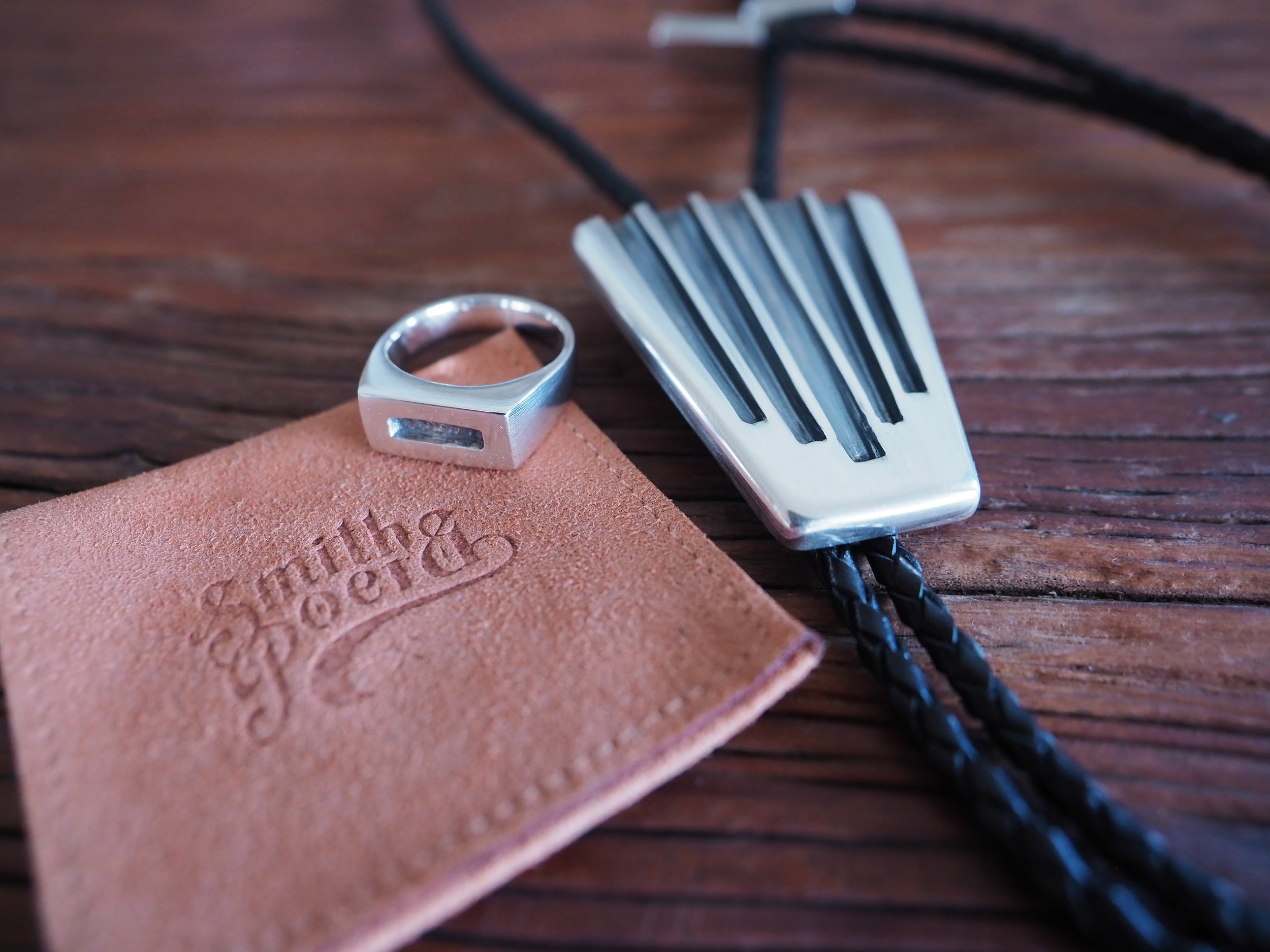 All parts of the bolo ties that Kate lovingly creates for you are made by her in her Sydney metalsmithing studio. Each part is thoughtfully sketched to create patterns, metal sheet is sawn by hand, layers are soldered together with the flame, leather lace plaited to step by step build up your beautifully crafted bolo tie.