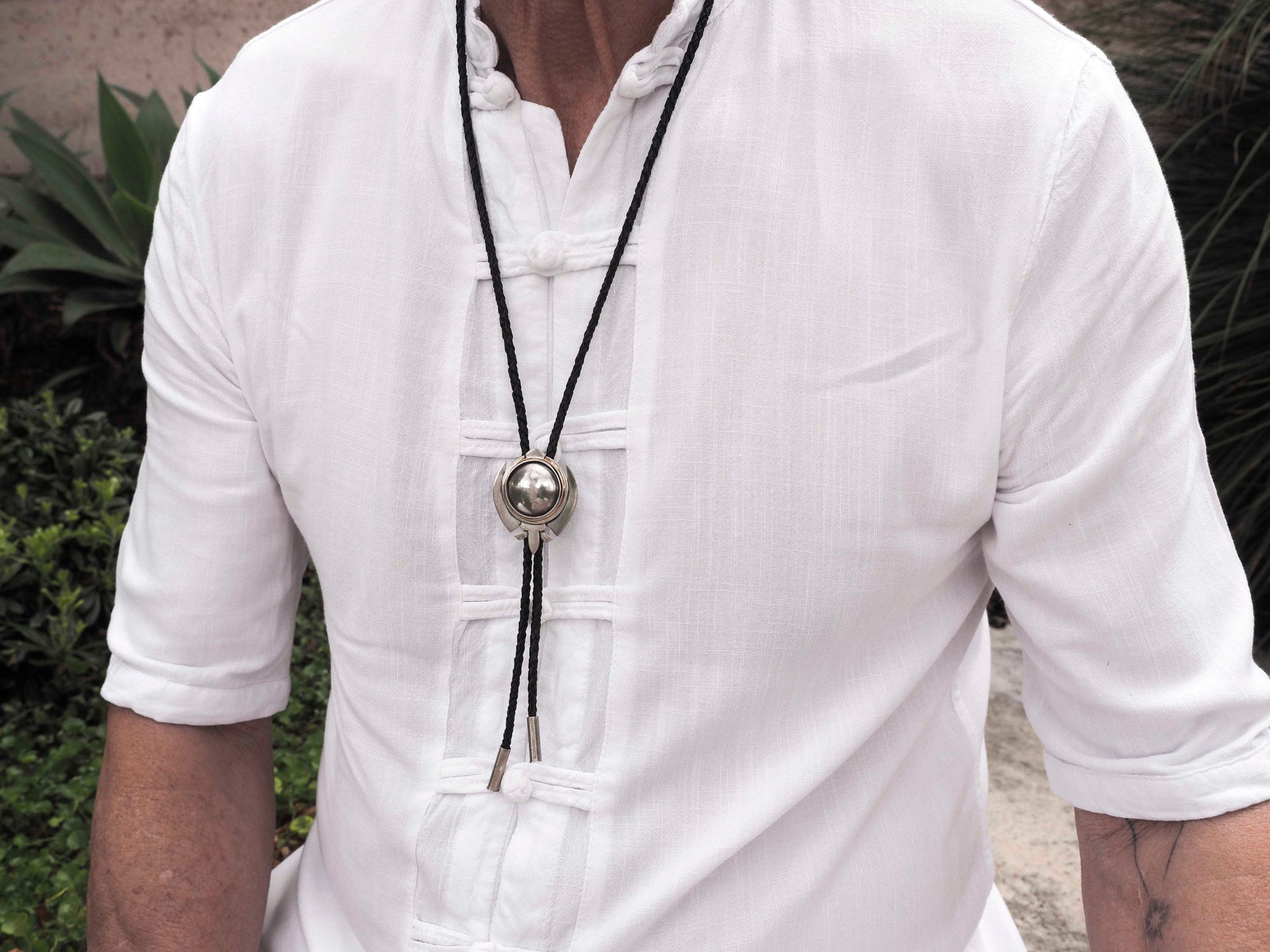 Kate hand makes all parts which include the metal pendant, the adjustable bennett clasp at the back, plaiting the leather and making the bolo tie ends as well. Your bolo tie comes gifted in a suede custom pouch and a postcard showing the fabrication journey with a handwritten thank you from Kate for the opportunity.